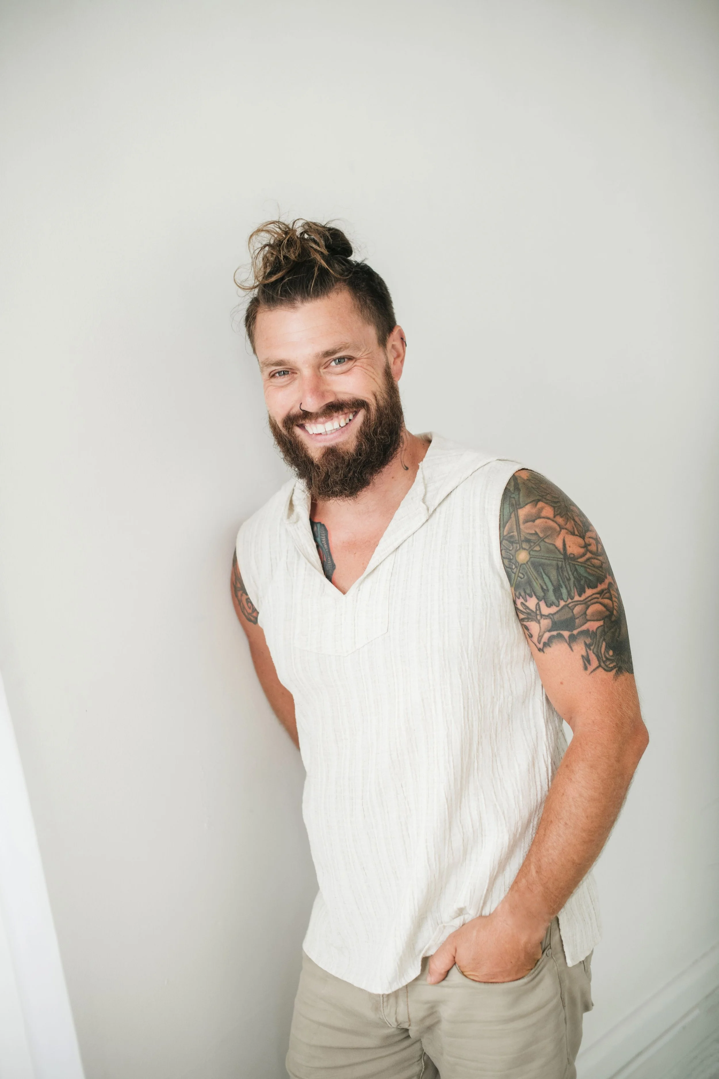 Meet Sebastian—after a decade as a personal trainer in the Air Force, he found his path in the healing arts. Drawn to Thai Yoga Massage as a sacred practice, he now shares simple techniques that help couples slow down, connect through touch and breath, and enjoy a fun, stress-relieving experience together.